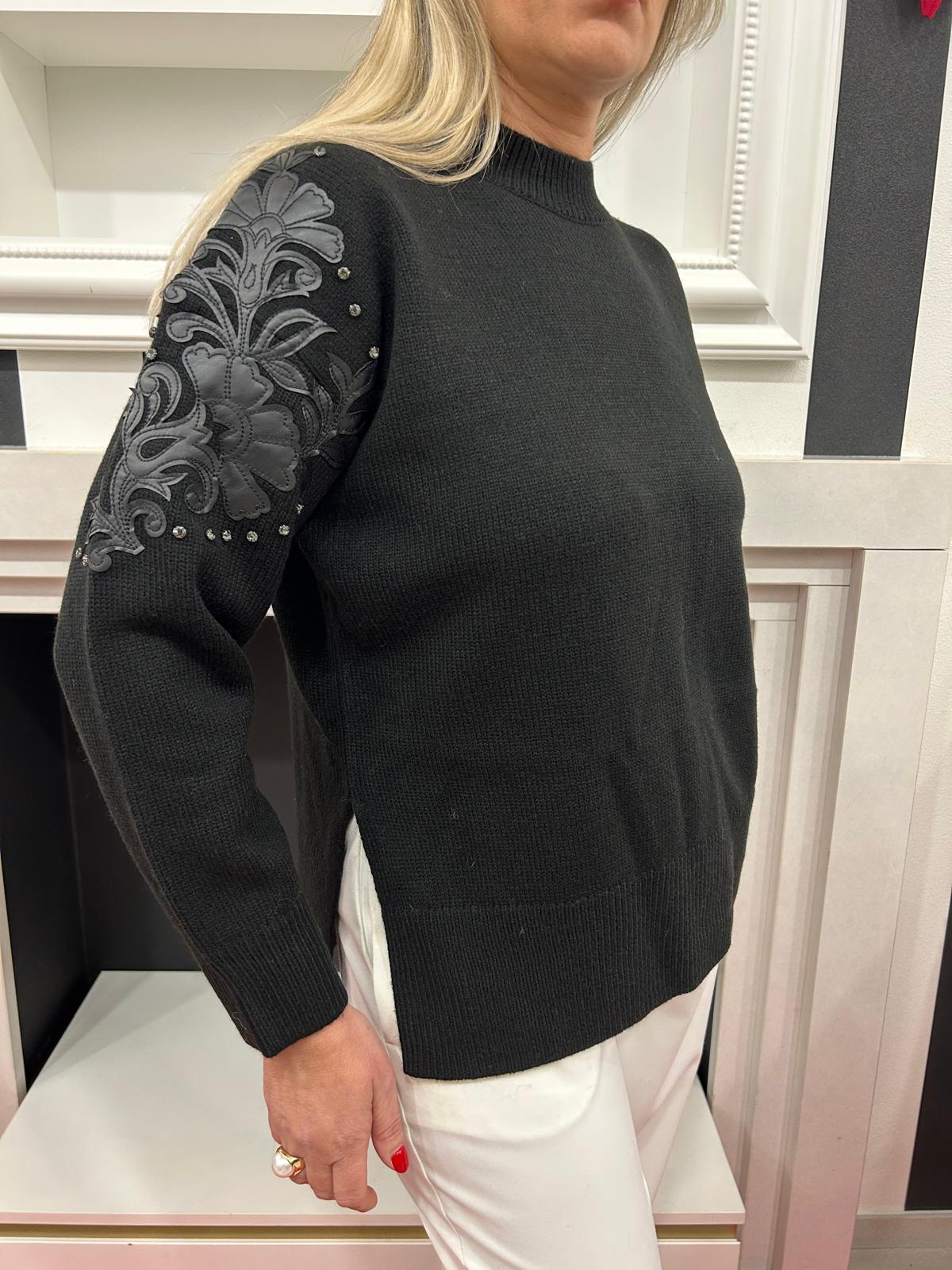 Maglia girocollo con inserti in ecopelle Trash and Luxury (FW25261346)