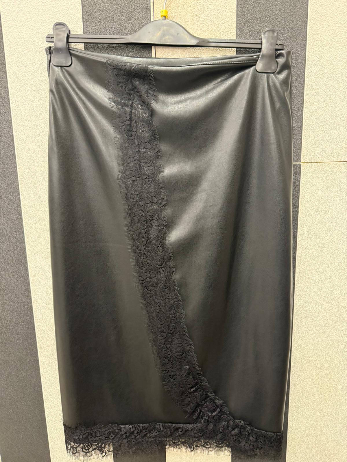 Gonna a Matita in ecopelle con inserti in pizzo