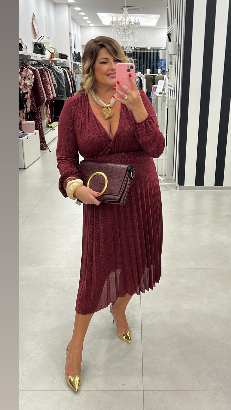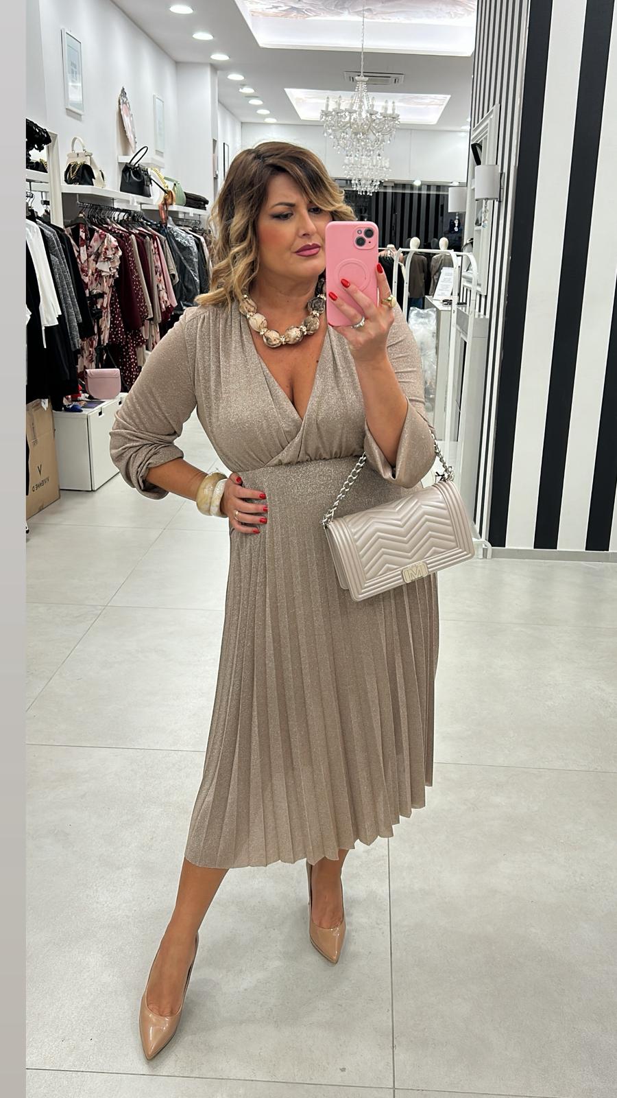 Abito plissé in lurex con manica