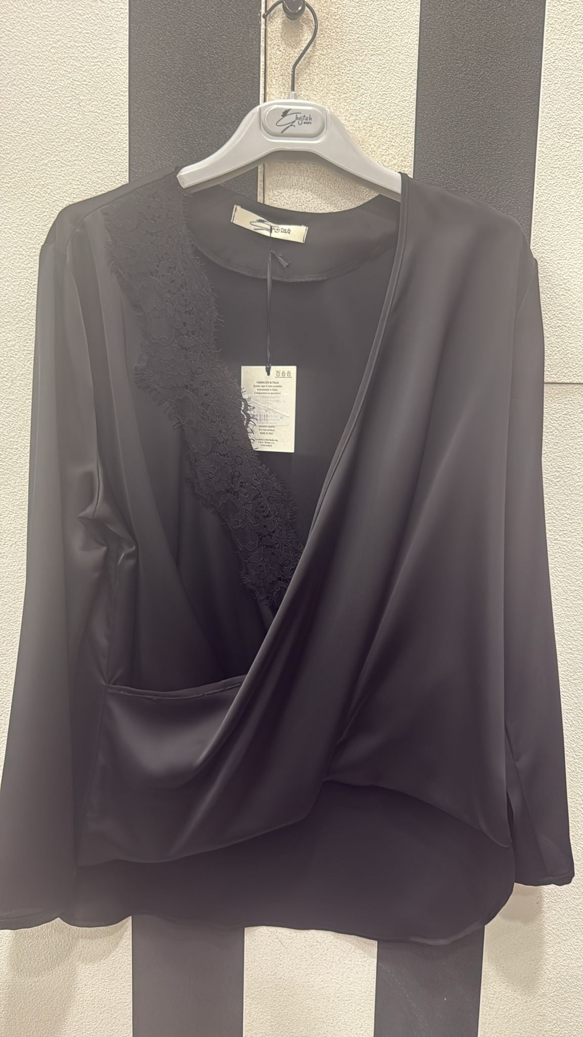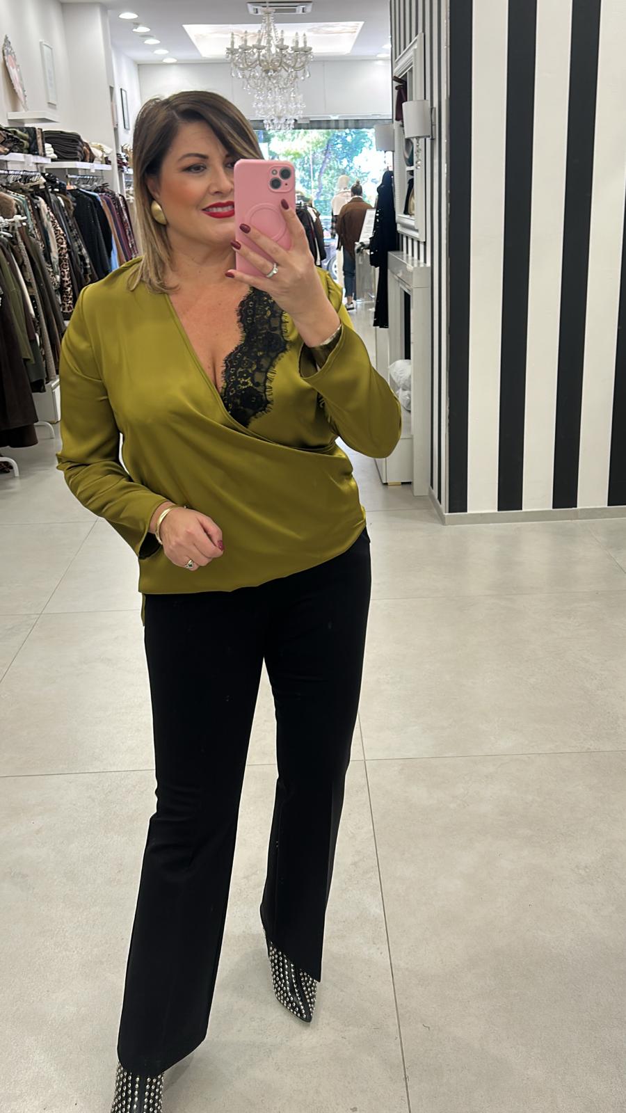 Blusa con collo incrociato e pizzo (g10110)