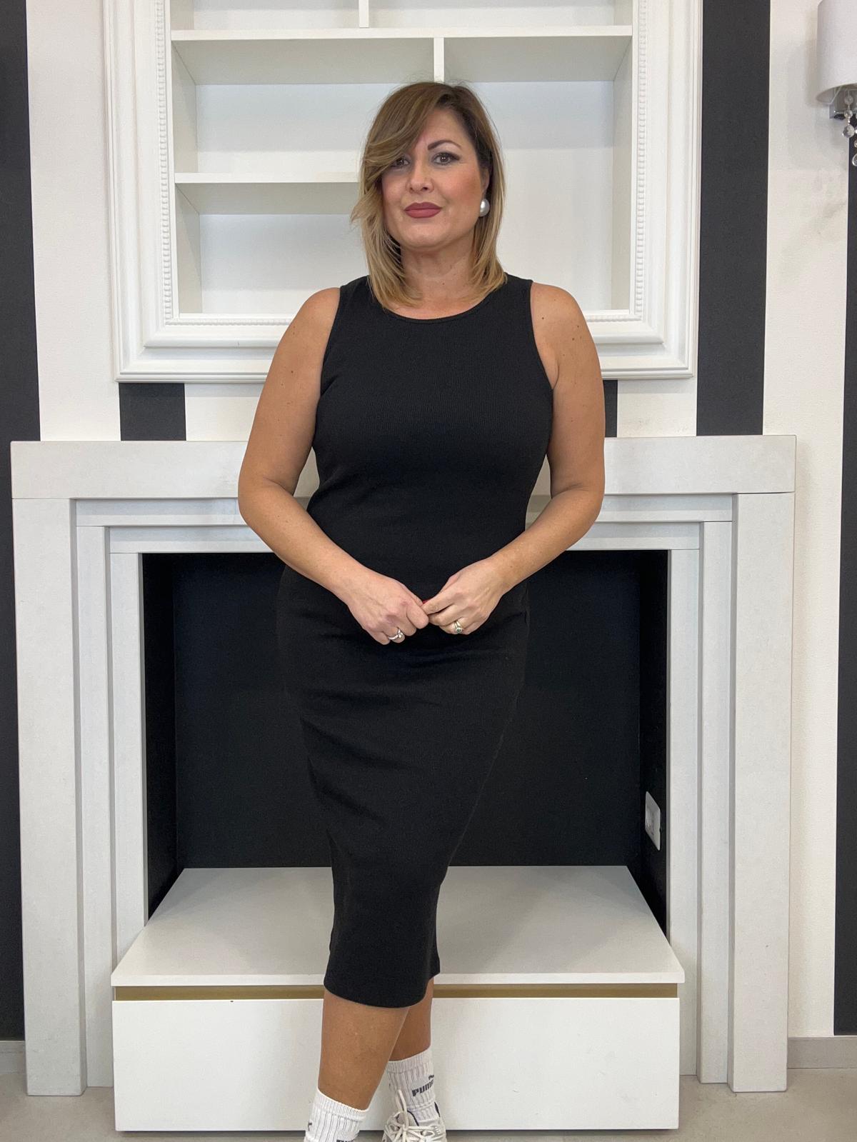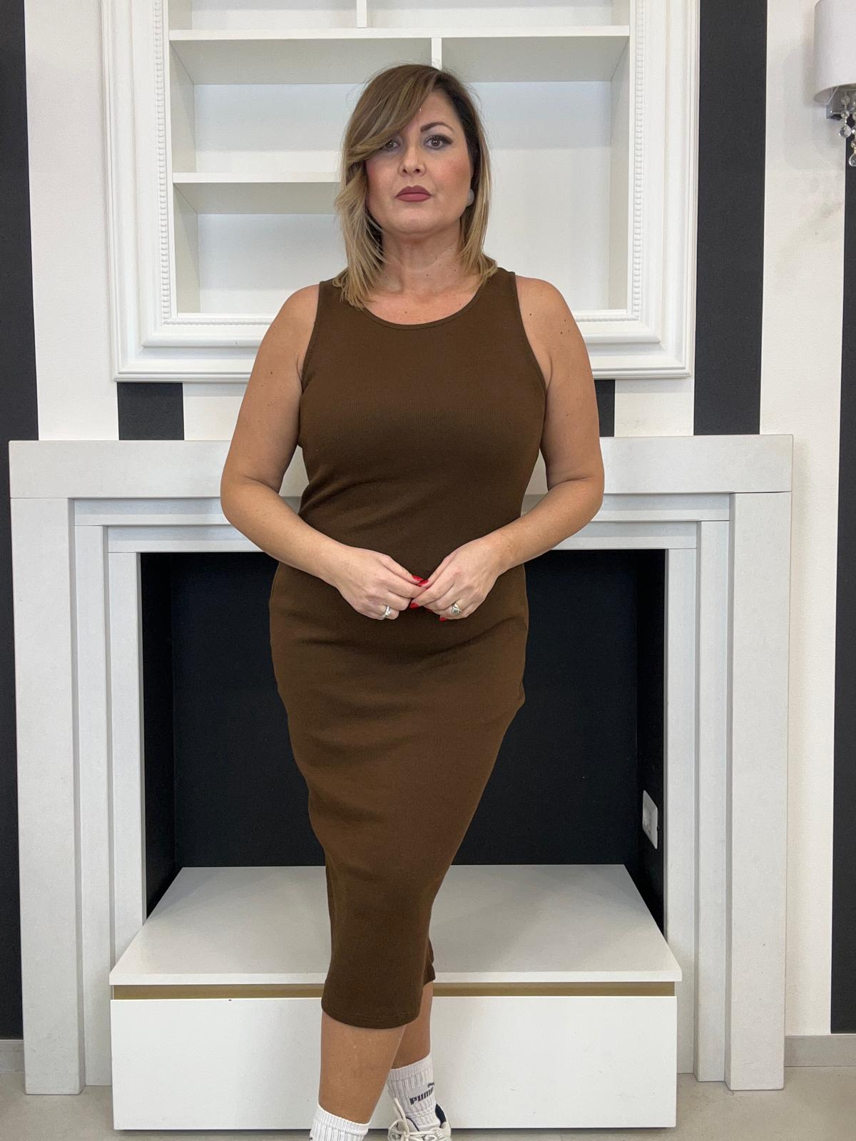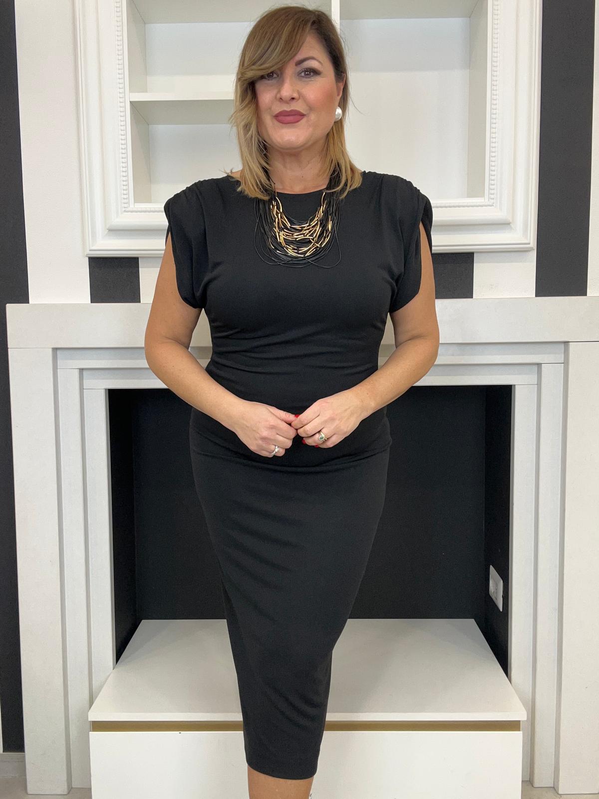 Abito Lungo con incrocio di pailettes moro. (H2Oalmo)