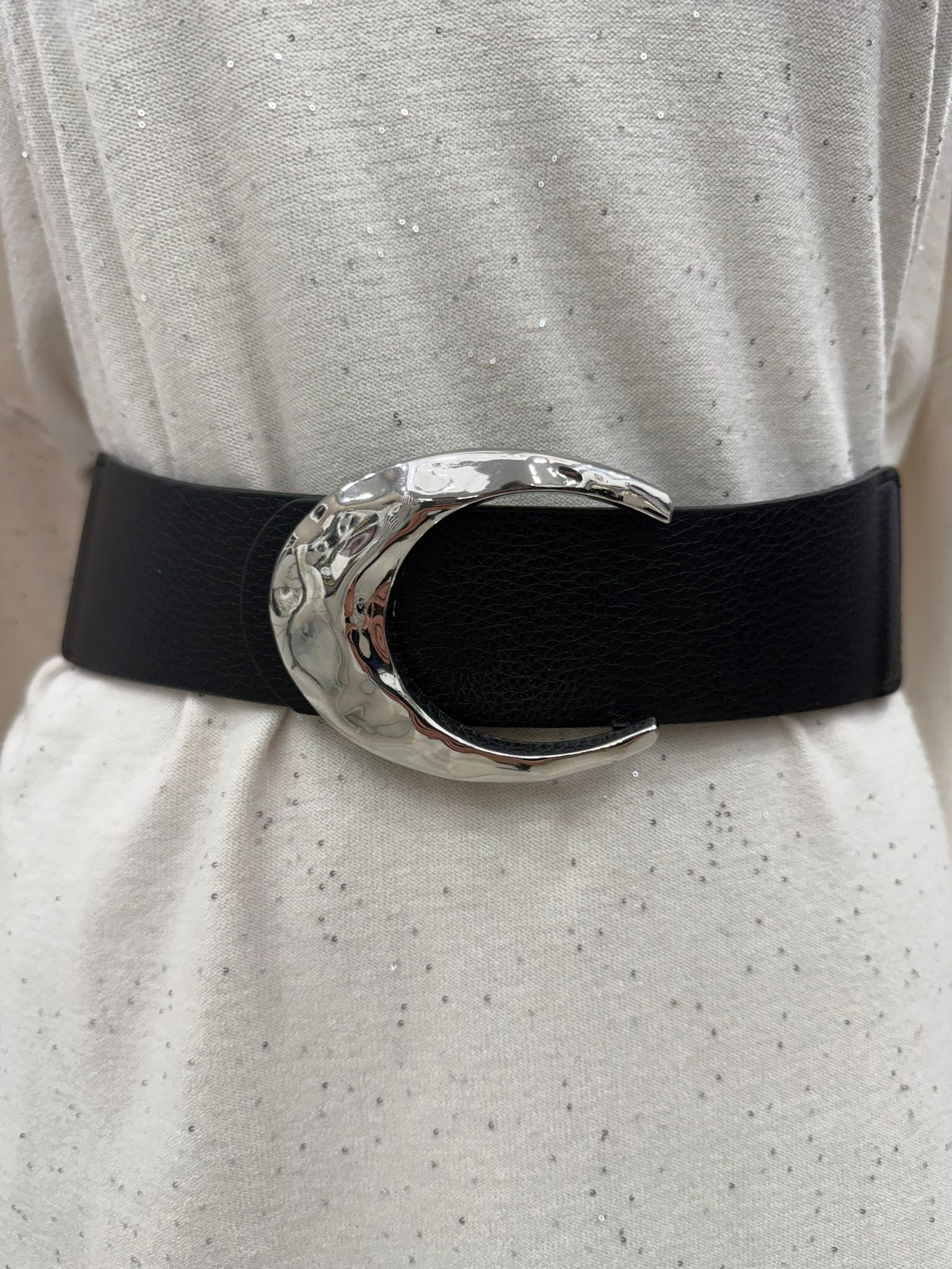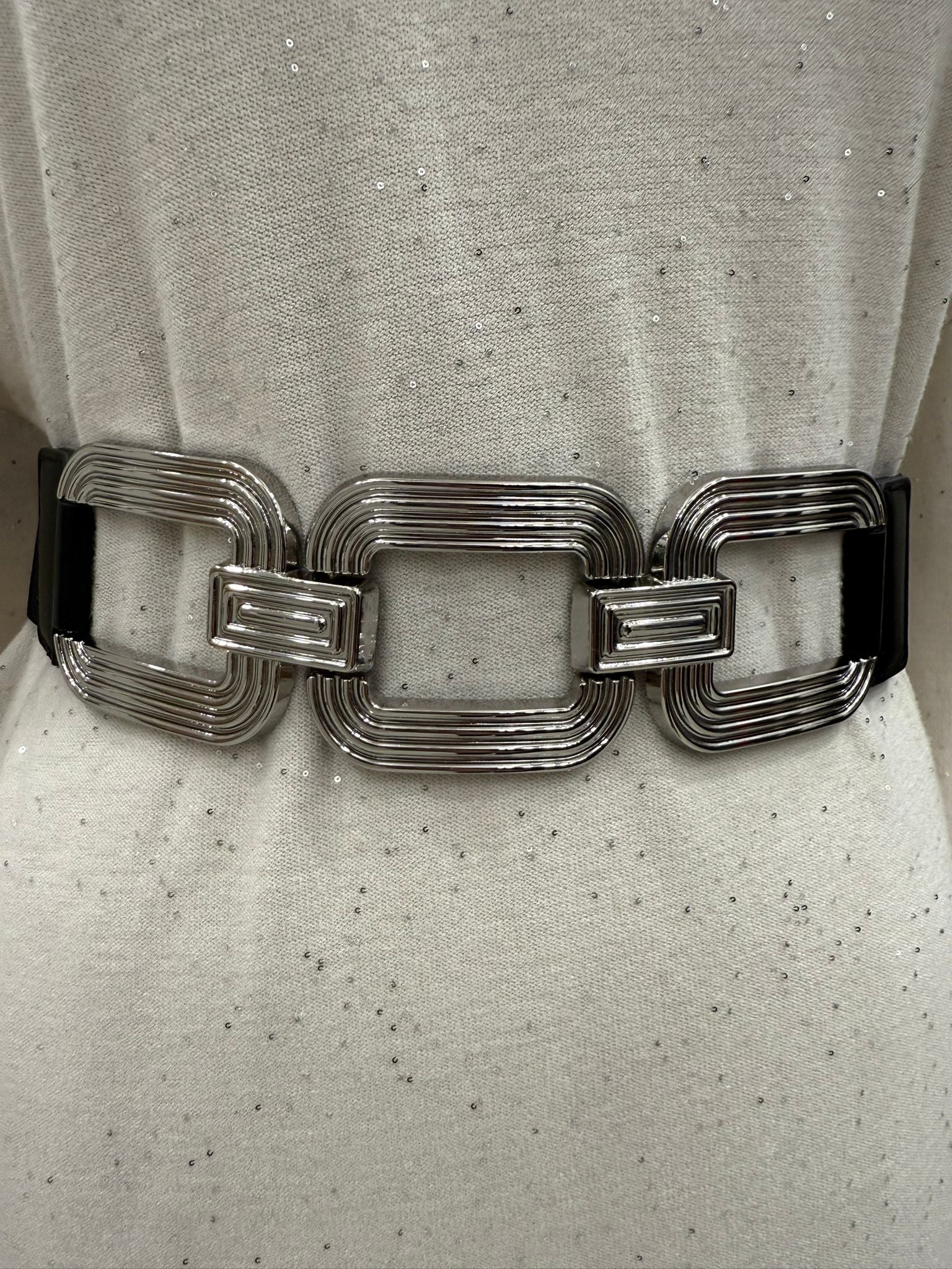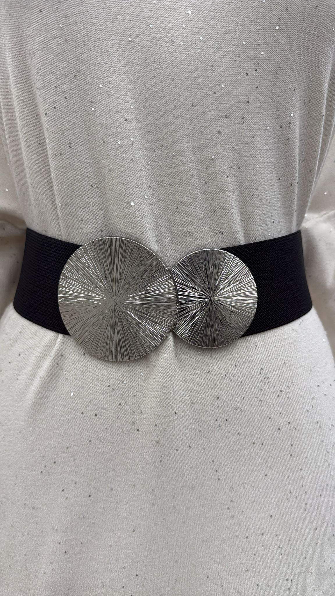 Cintura con fibbia elastica nero/argento