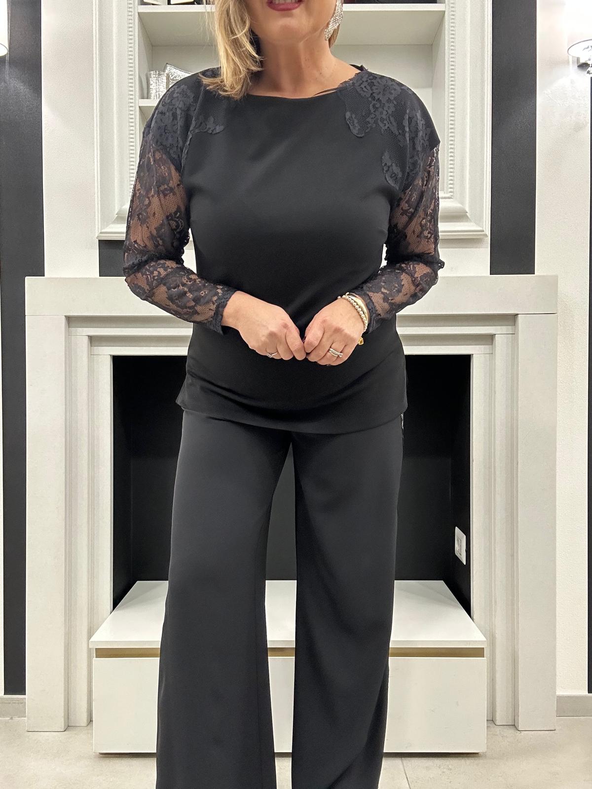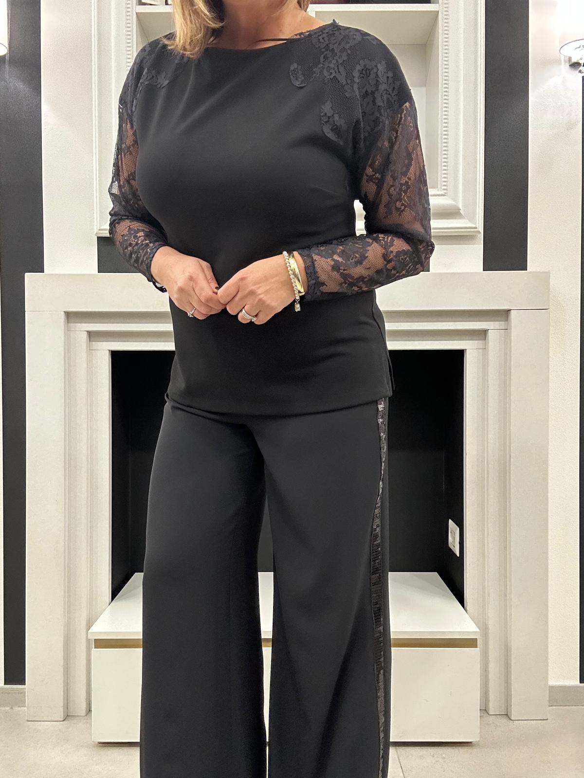 Pantalone Palazzo con banda di pailettes (DJSG209)