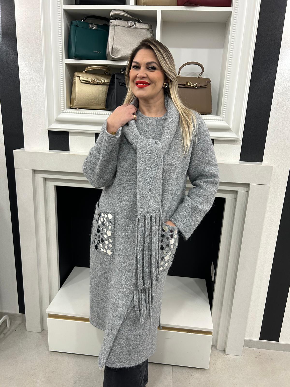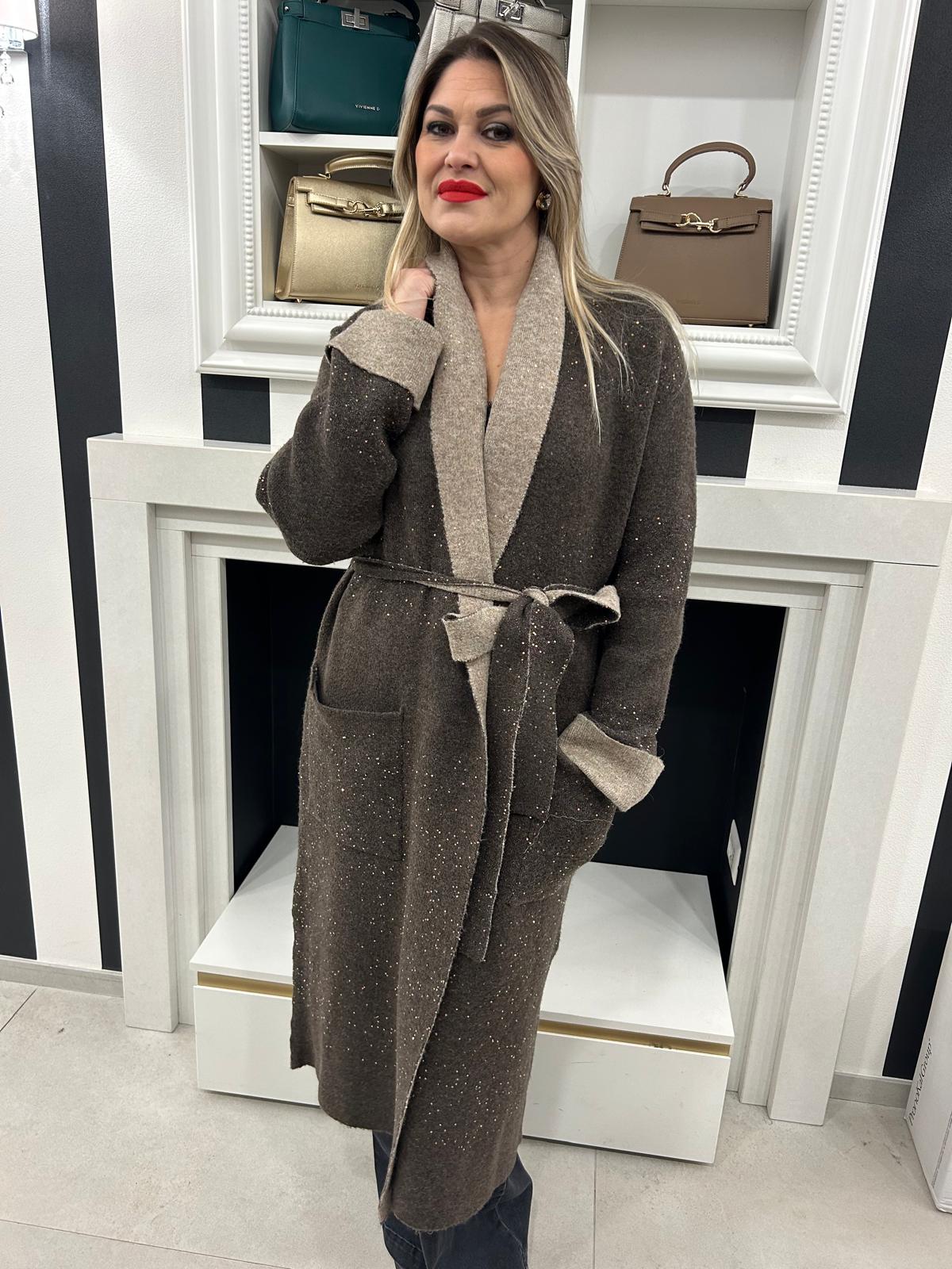 Cappotto lungo in maglia con micro pailettes Vicolo