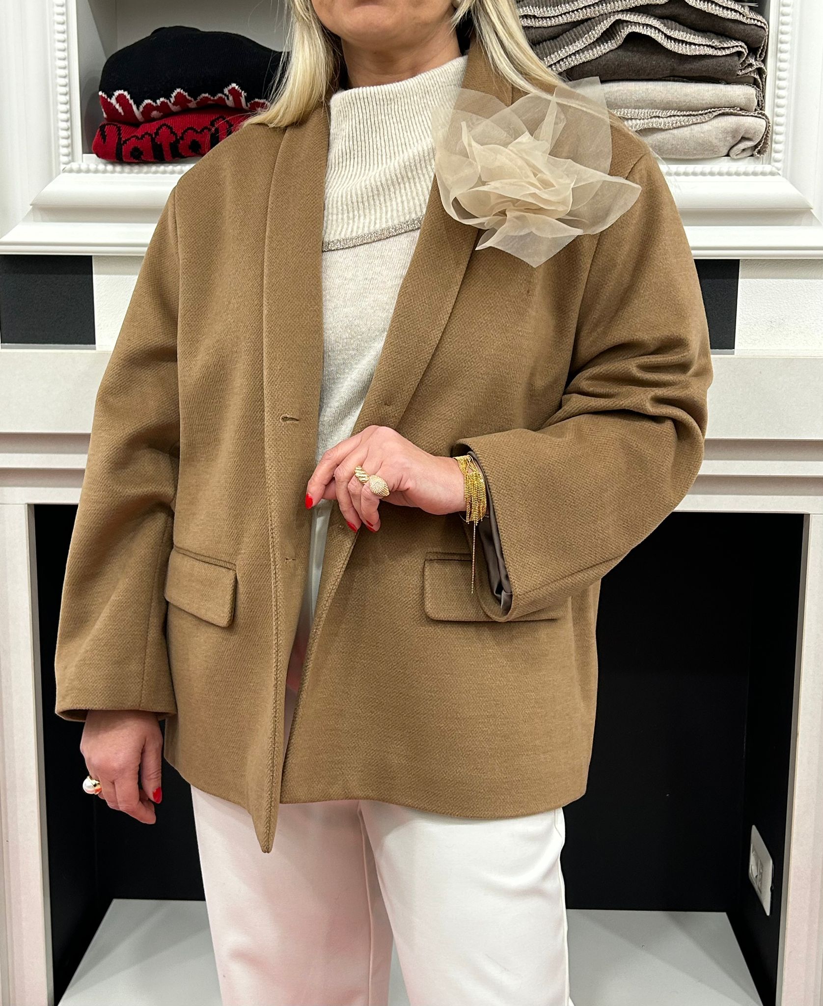 Caban cammello con fiore