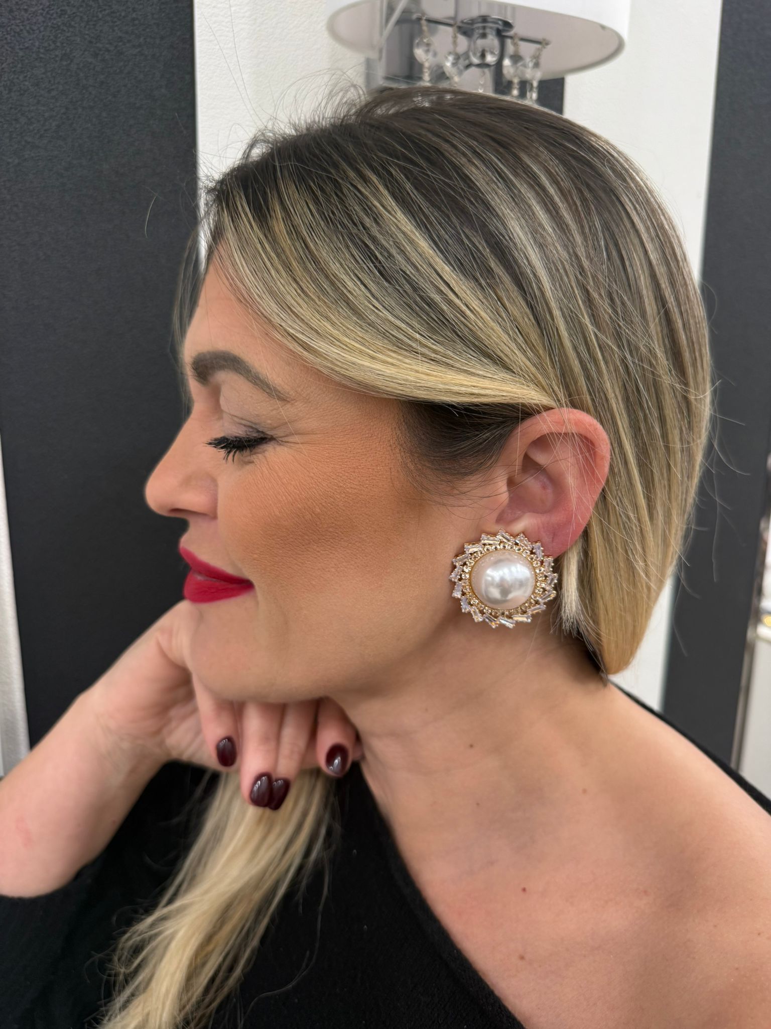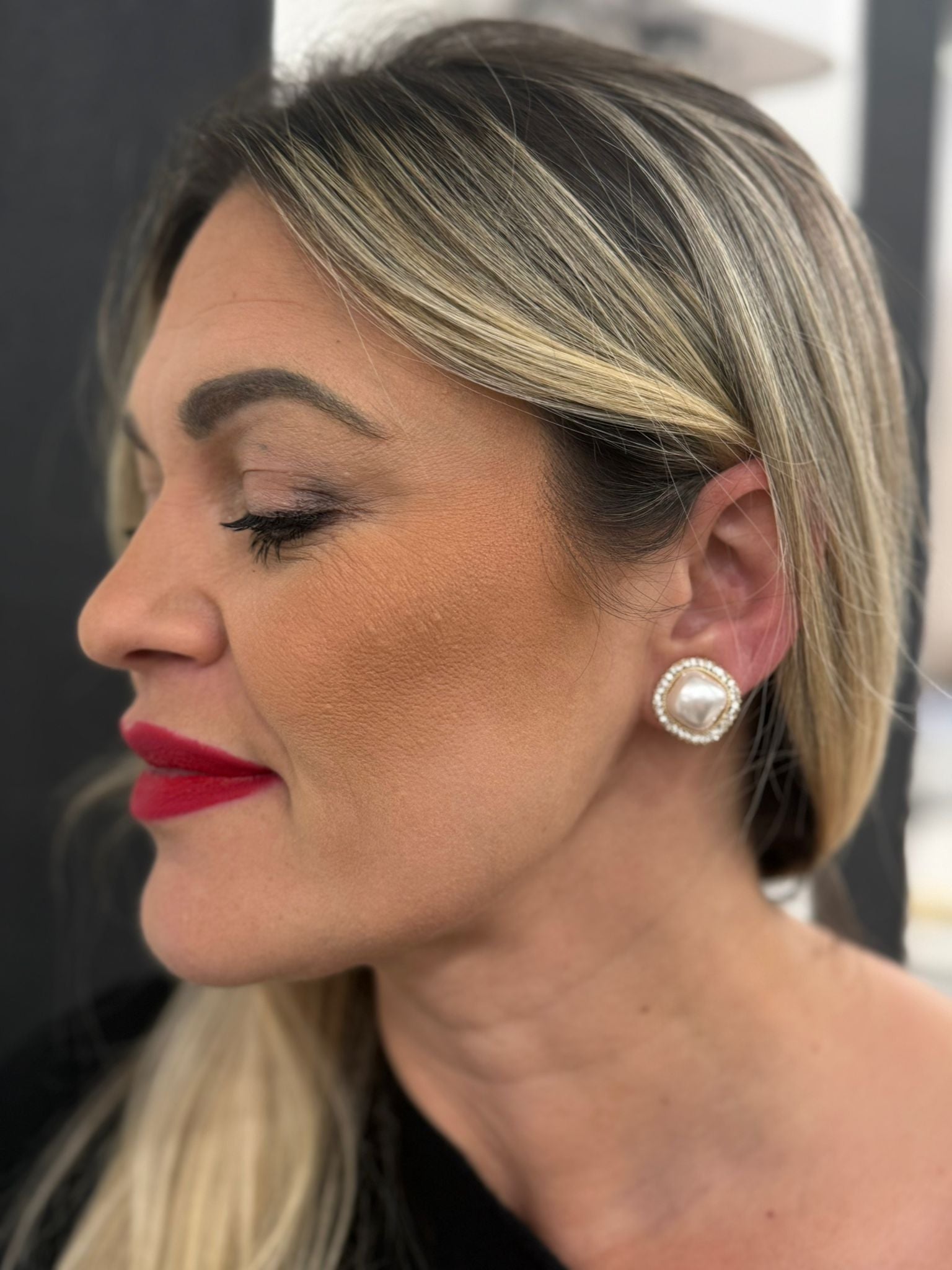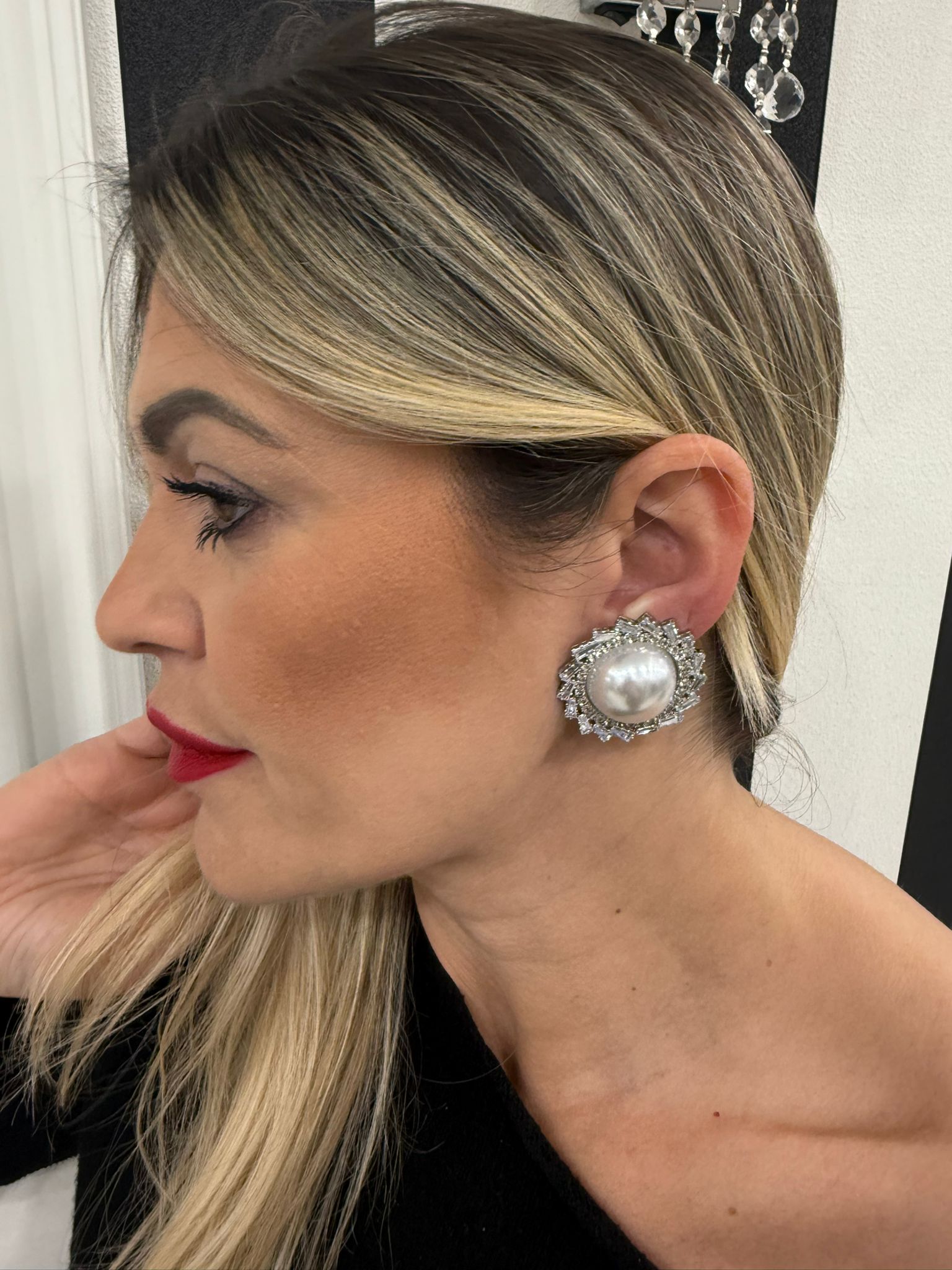 Orecchini con perla quadrata e strass