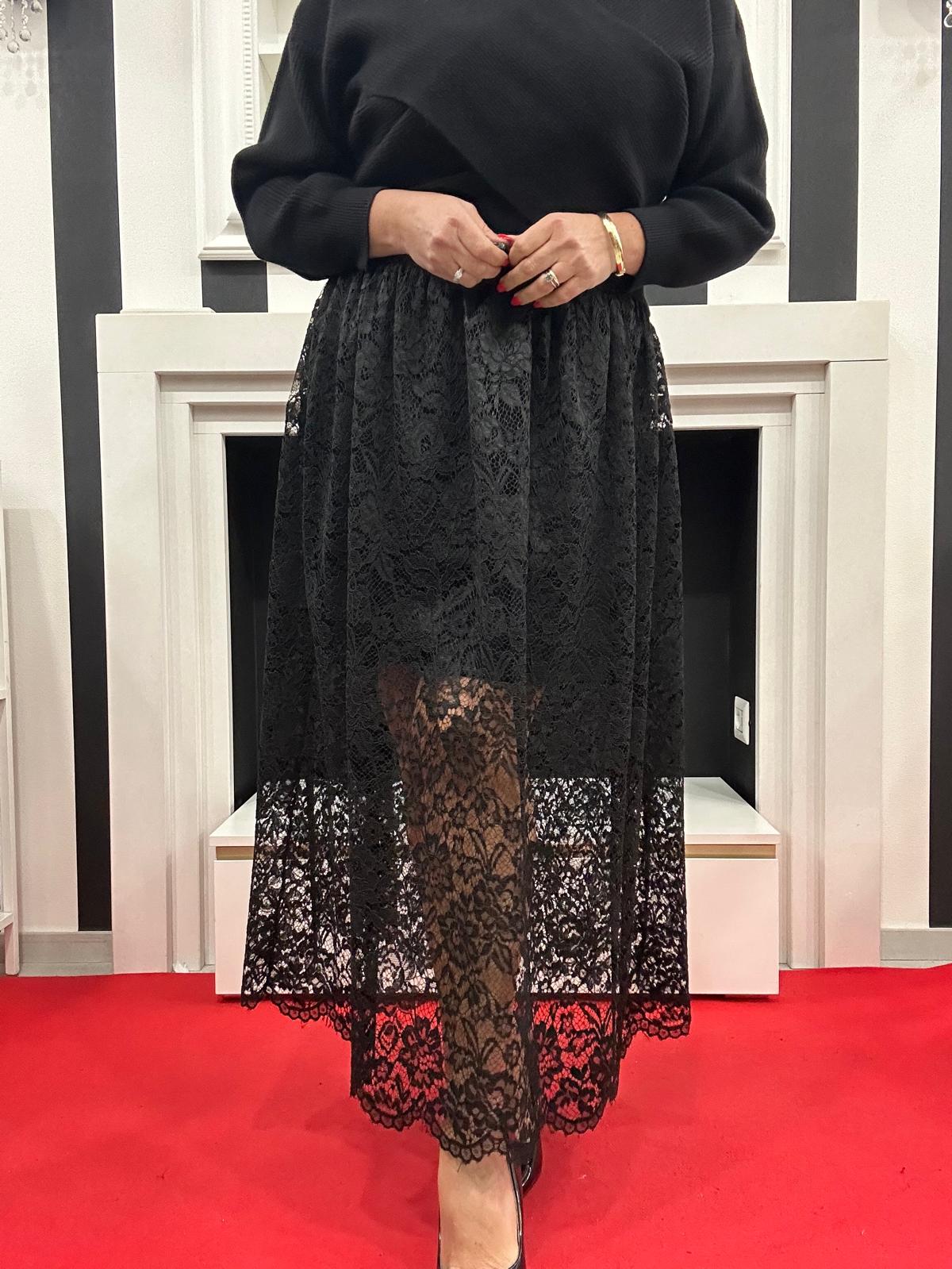 Gonna lunga intarsio pizzo Tensione in (37684)